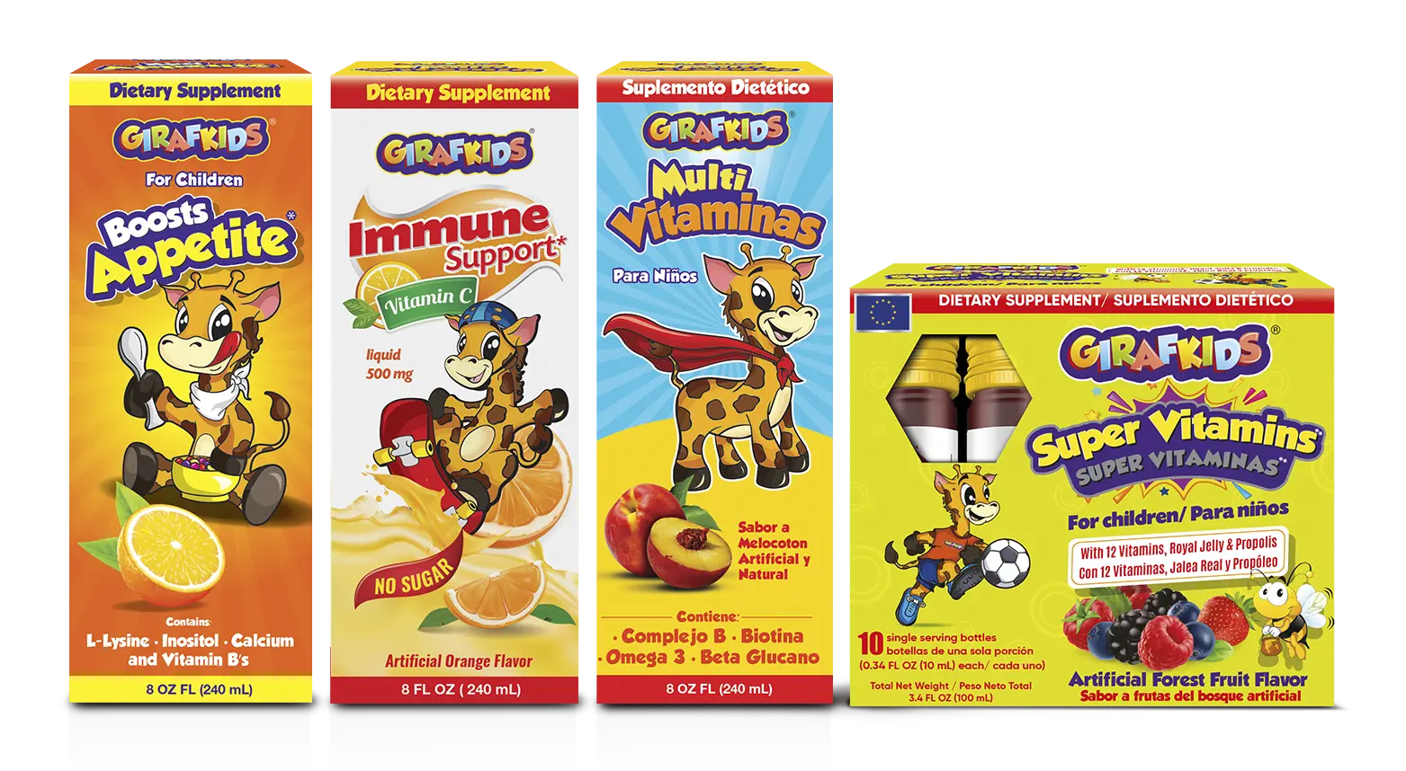 Girafkids is a complete multivitamin that complements your child’s diet, providing essential vitamins and minerals for their growth and development. It helps strengthen the immune system, improves concentration and school performance, and contributes to bone and dental health.